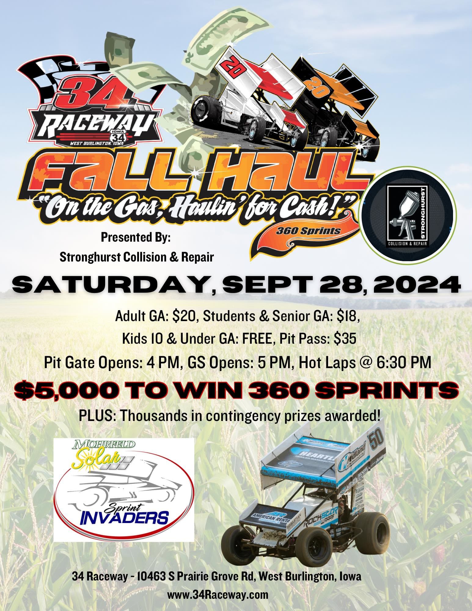 Sprint Invaders return to southeast Iowa's premier place to race for a thrilling evening of family fun and fast dirt-track racing! Plus vintage modifieds from American Iron Racing Series.