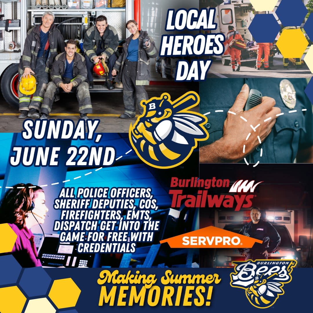 It's Local Heroes Day at Community Field - all emergency responders - police, firefighters, sheriffs, EMTs, dispatch, COs - get in free with credentials.