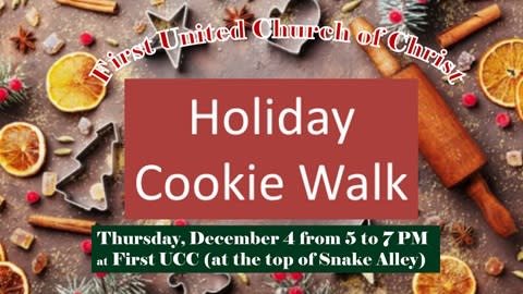 Holidays got you frazzled? Take baking day off your schedule with this fun, festive cookie walk at First United Church of Christ!