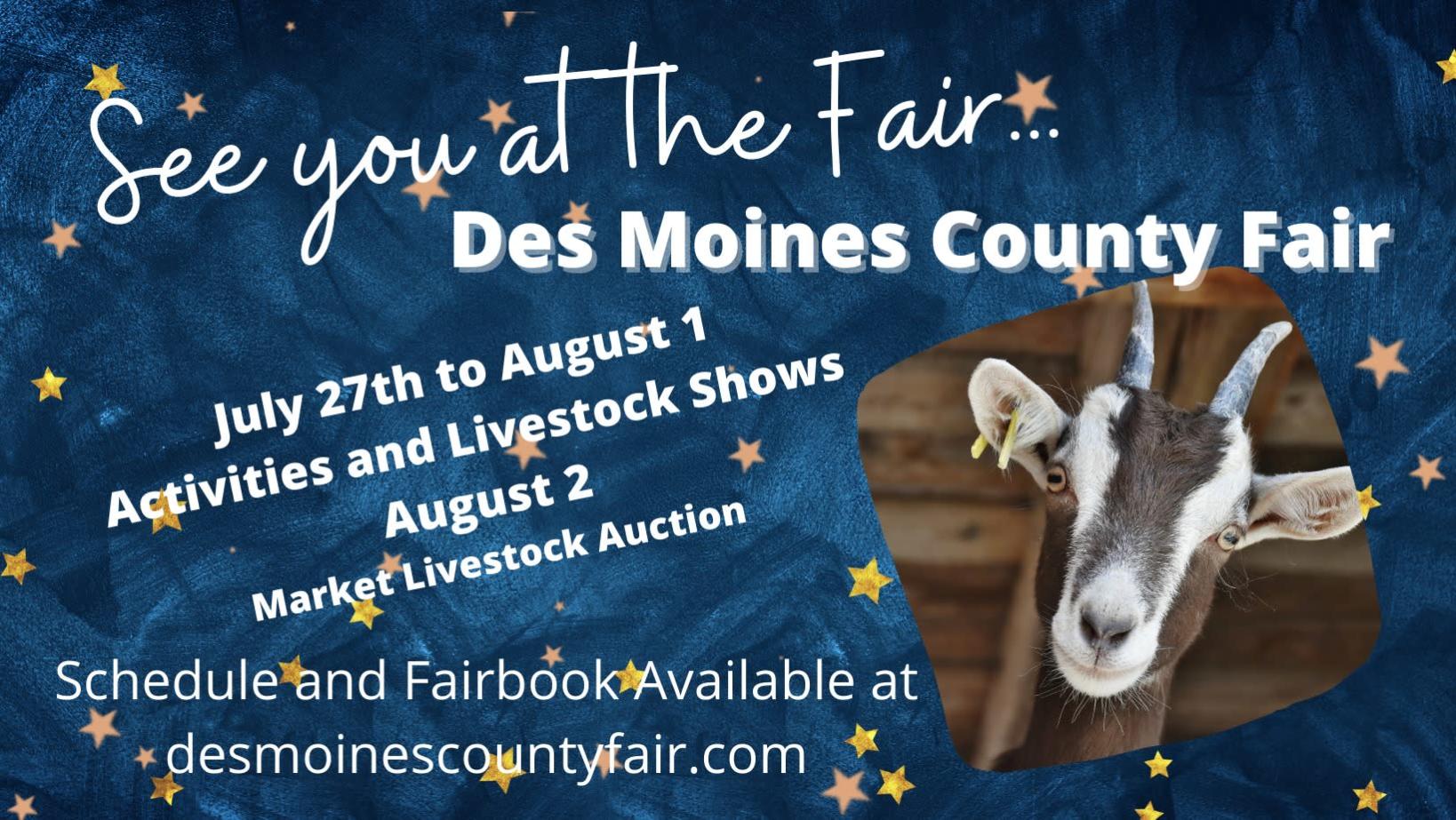 For all the fair news and events, follow the Des Moines County Fair on Facebook, and visit: