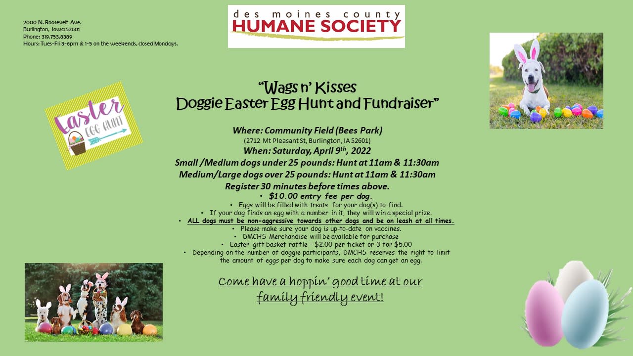 Cost is $10 per dog; all proceeds from this event will benefit the Des Moines County Humane Society.