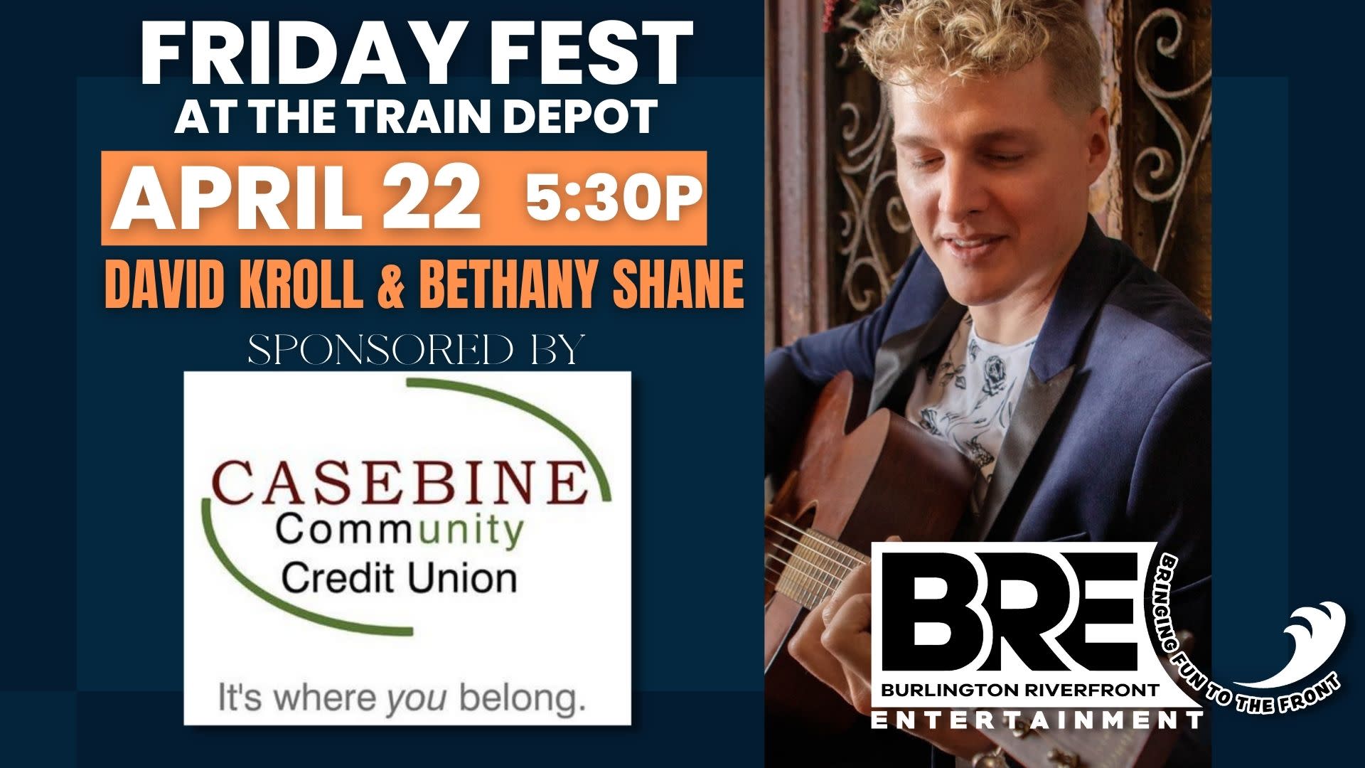 Head to the Burlington riverfront for the first Friday Fest of the 2022 season! Unwind with some great food & beverages and enjoy live music from David Kroll and Bethany Shane in the grand hall at the historic Burlington Depot.