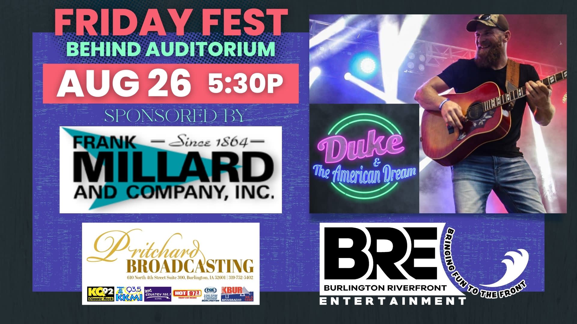 Kick off the weekend with this fun, FREE event on the Burlington riverfront with Duke & the American Dream!