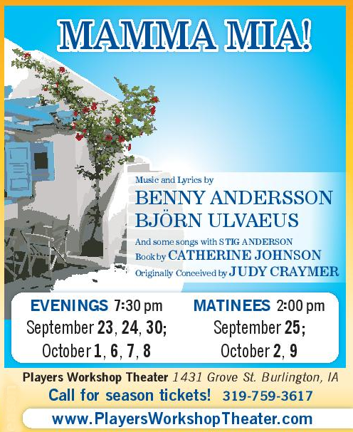 Players Workshop opens its 90th season with Mama Mia!, the ABBA-tastic hit musical that inspired a hit movie and is sure to be a hit on the local stage, too!