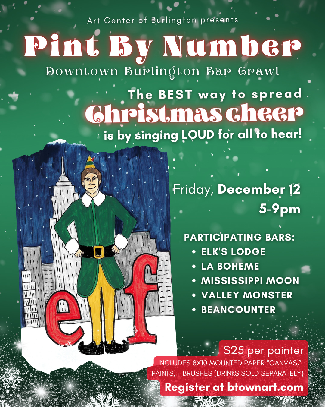 This fun spin on 'paint by number' starts at the Art Center of Burlington, where painters pick up their paint-by-number “canvas” and brushes. Then make your way to each of the five participating downtown locations to fill in the blanks!