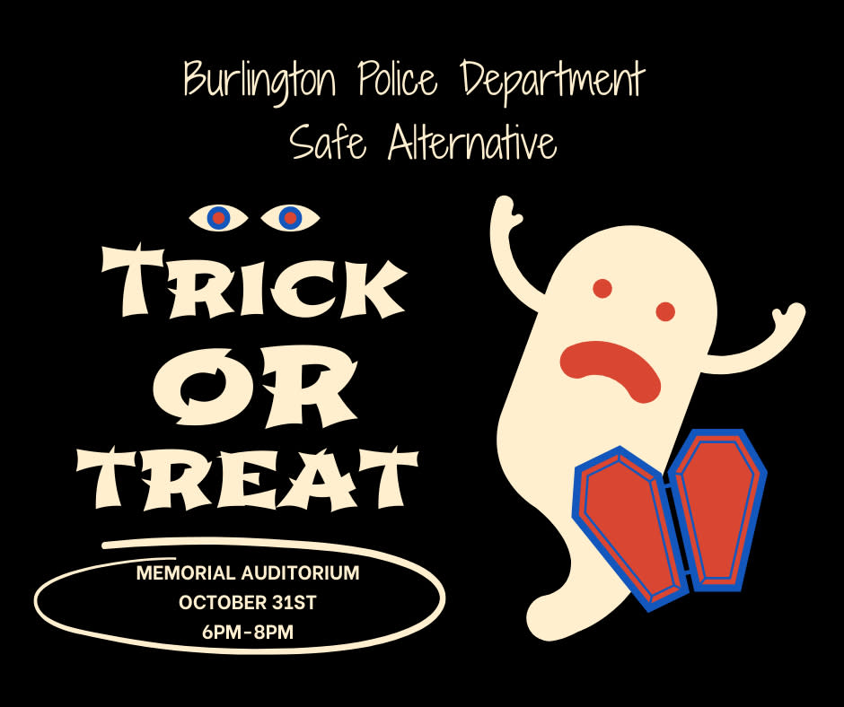Join the Burlington Police Department and local businesses and organizations as we provide a safe alternative to Trick or Treat for our ghouls and goblins.