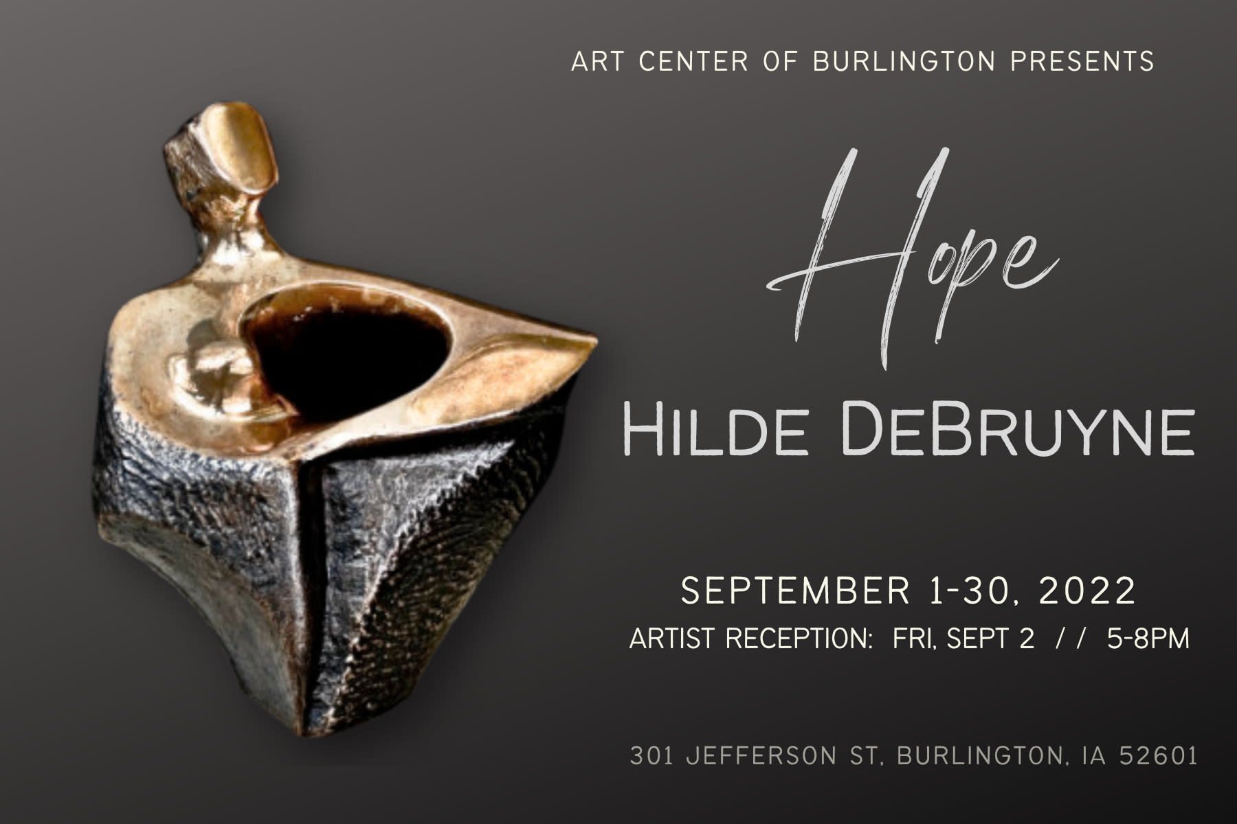 Belgian-American artist Hilde DeBruyne is a sculptor and designer in clay, metal and bronze whose work has been exhibited internationally and is included in public and private collections. Both the month-long show and the artists' reception – 5 – 8 PM on Friday, September 2 – are free and open to the public.