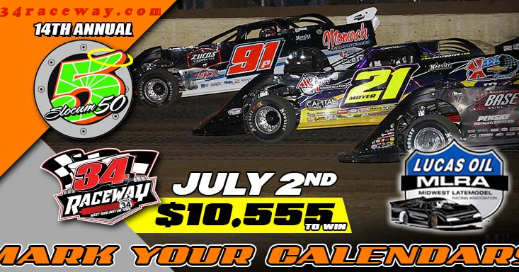 Don't miss the 14th annual Slocum 50 at 34 Raceway! Fast cars and fierce competitors will vie for the coveted Slocum 50 trophy - and the $10,555 purse!
