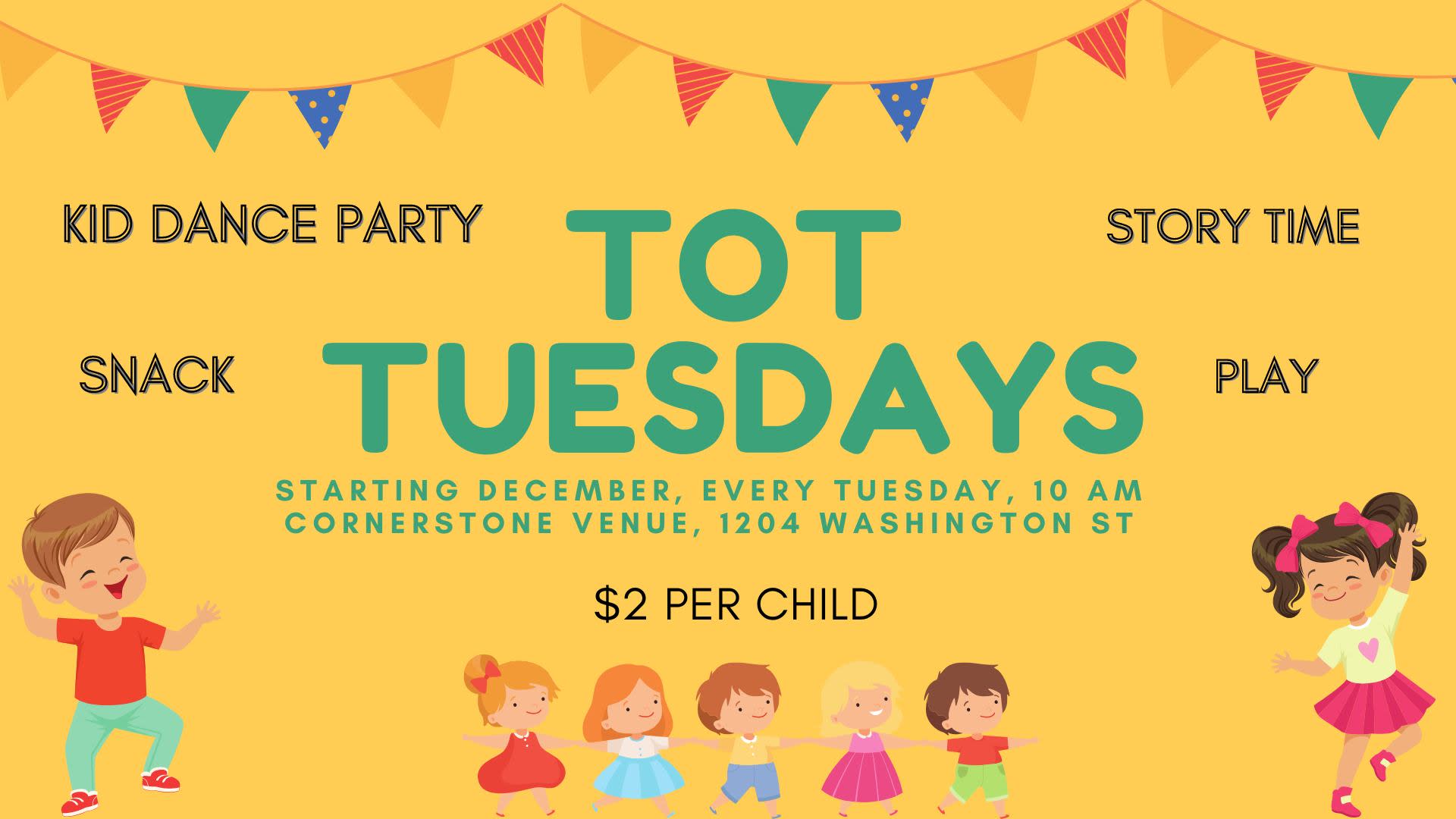 Cornerstone Wedding & Event Center announces Tot Tuesdays, a very special weekly event just for the little ones. With a dance party, story time, snacks and more, Tuesdays may just become your family's favorite day!