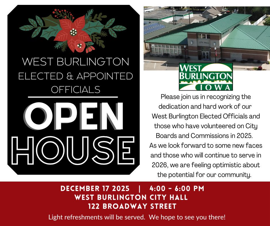 All are welcome to attend an open house for elected & appointed officials serving on West Burlington city boards and commissions.